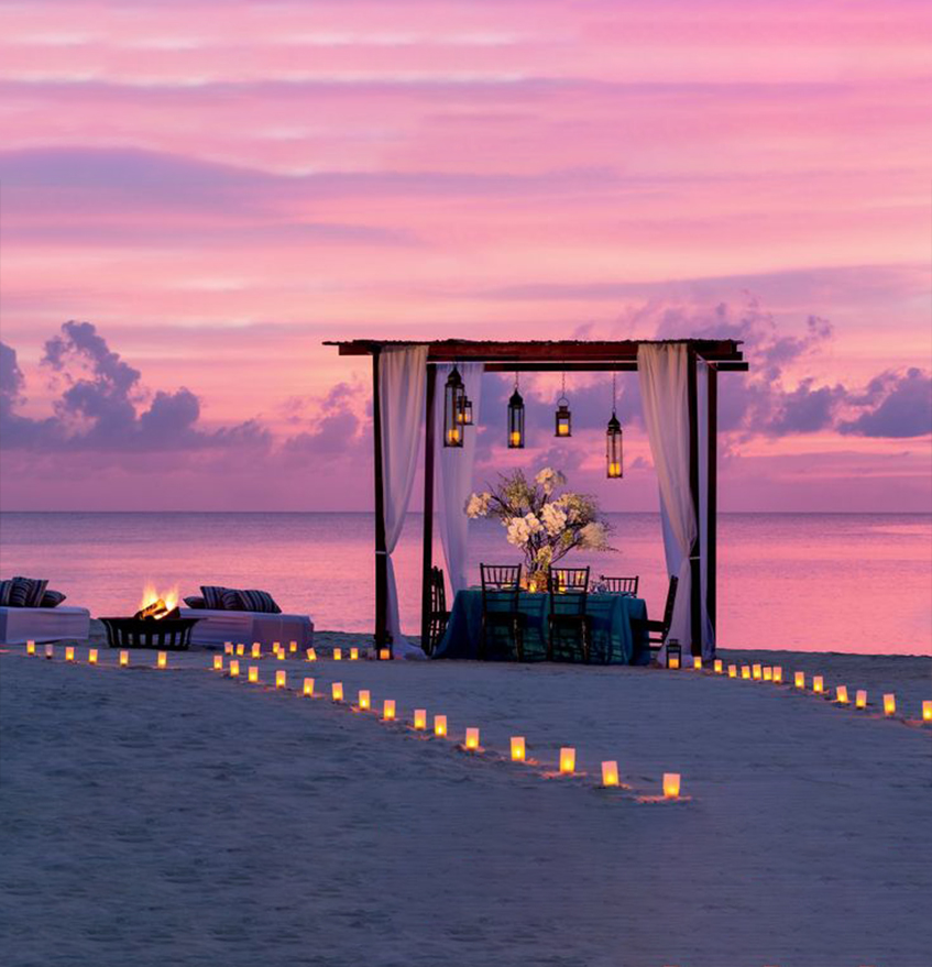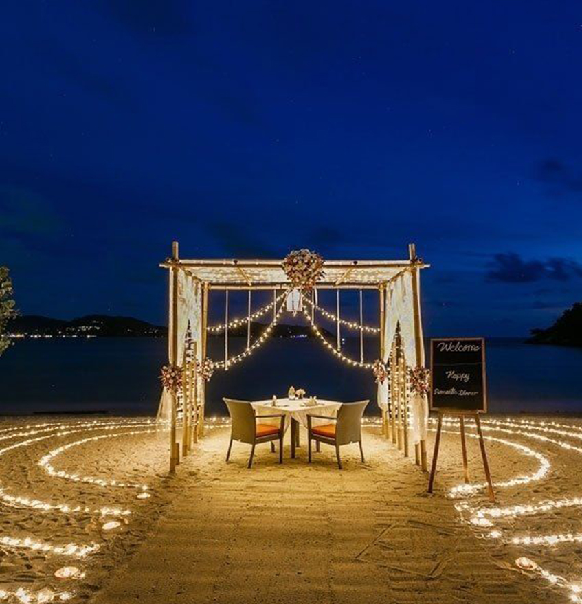 An unparalleled experience: selecting the perfect location for your better half from the beautiful beaches and views of Dubai to make your special moments a little extra special. Enter the romantic fairytale with the finest dining experience at the customized private beach setup of your liking in Dubai; A candlelit dinner under the stars, with the serenity of the waves crashing on the shore.